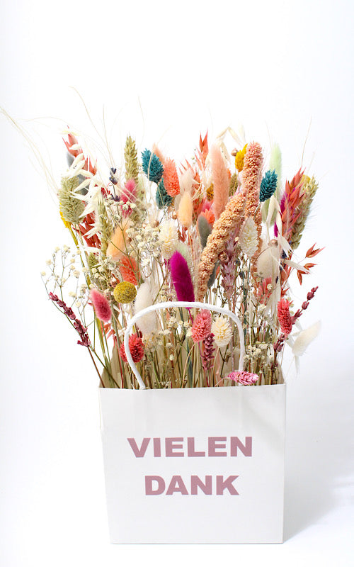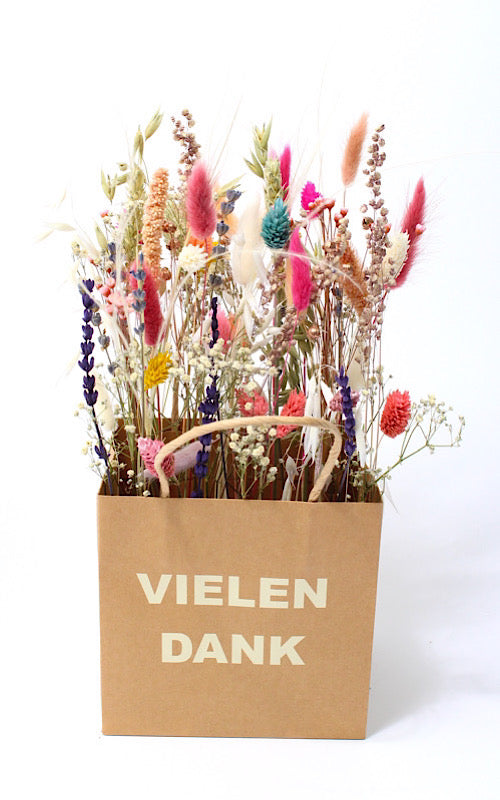 Unser neues Produkt sind unsere Geschenk-Tüten mit Trockenblumen.